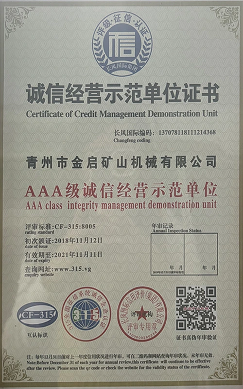 Miaraka amin'ny traikefa an-taonany lalina ao amin'ny indostria, miantehitra amin'ny fanaraha-maso ny kalitao henjana sy ny fanavaozana ara-teknolojia mitohy, ny orinasa dia nahazo mari-pankasitrahana maromaro, fanamarinana ary taratasy fanamarinana patanty, anisan'izany ny fanamarinana rafitra fitantanana kalitao ISO, fanamarinana fiarovana ny vokatra momba ny harena an-kibon'ny tany, ary koa ny patanty famoronana maro sy ny patanty modely ho an'ny firafitry ny fitaovana fanatsarana ny teknolojia sy ny famokarana angovo.